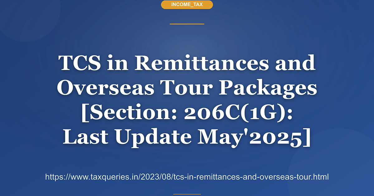 Home 2025 Tcs Remittances Overseas TCS in Remittances and Overseas Tour Packages [Section: 206C(1G): Last Update May'2025] Illustration for TCS in Remittances and Overseas Tour Packages [Section: 206C(1G): Last Update May'2025] Credit: catbox hosted asset Copy Post a Comment Post a Comment