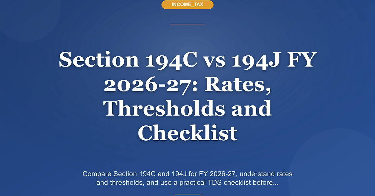 This guide explains the practical difference between Section 194C and Section 194J for FY 2026-27 and gives Indian businesses a simple checklist they can use before they deduct tax or finalise a vendor booking.