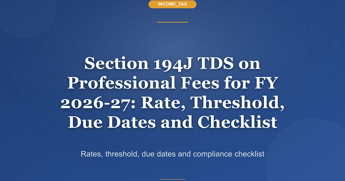 Section 194J TDS on professional fees is one of the most important withholding provisions for Indian businesses in FY 2026-27 because consultant and advisory payments sit across routine finance workflows: retainers, one-off opinions, design assignments, tax work, audit support, technical engagements, and non-salaried director payouts. The framework looks familiar, which is exactly why teams get complacent. In practice, most failures arise from the basics: classifying the service wrongly, using an outdated threshold, skipping PAN checks, or filing the wrong data in the quarterly return. For FY 2026-27, the broad Section 194J position remains unchanged. The general threshold remains Rs 50,000 aggregate per payee for the financial year, professional services typically attract 10%, certain technical services attract 2%, and non-furnishing of PAN may trigger 20% under section 206AA. If you are a business owner, finance lead, consultant, or tax practitioner, this is a control area that should be locked before the next invoice is booked.
